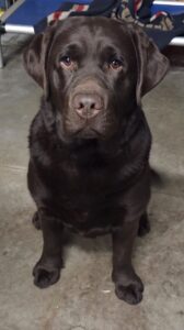 One-year-old chocolate male for rehoming. Will do best in a single dog house. Will be part of the breeding program. Please contact for more info.